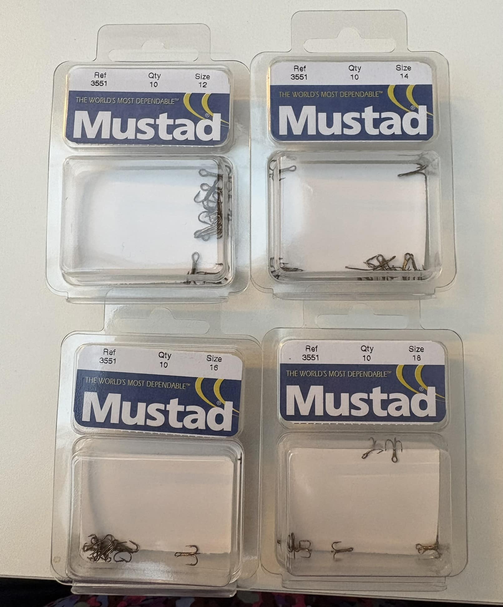 MUSTAD KROGE I SIZE 12-14-16-18 TREKROGE BRUGES NÆSTEN ALTID TIL KUNSTIG AGN IKKE TIL KLASSISK MEDEFISKERI PÅ BLINK OG SPINNER SIDDER EN TREKROG BAGPÅ