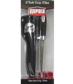 RAPALA FILET SOFT GRIP 15 CM HAR ET FLEKSIBELT OG SKARPT BLAD SOM GØR DEN RIGTIG GOD TIL FIN ARBEJDE LANGS RYGBEN OG SKIND DEN INDHOLDER EN SLIBER TIL KNIVBLADET