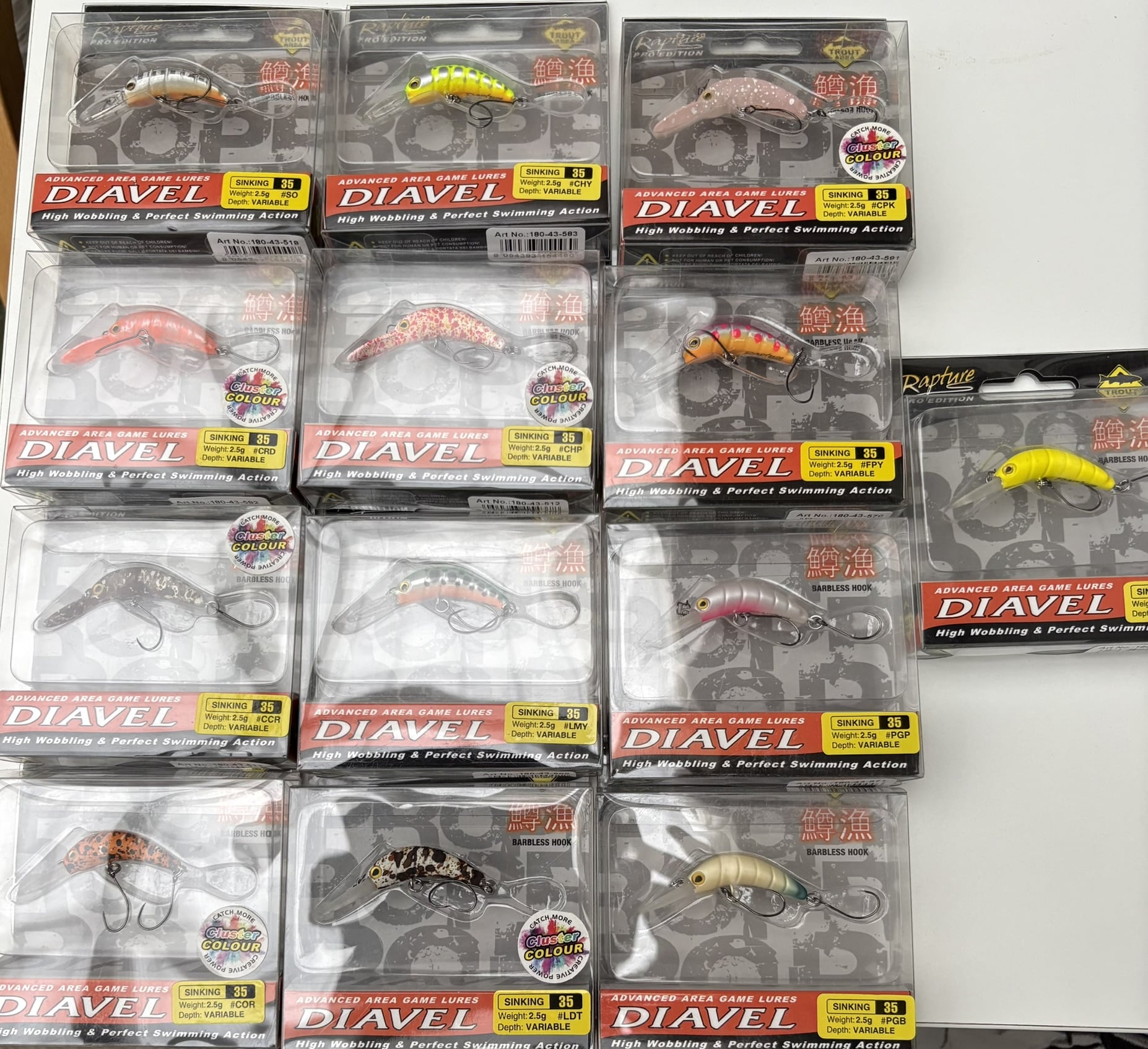 RAPTURE PRO EDITION DIAVEL SINKING 2,5 DE SMÅ WOBLER LAVET TIL ISÆR ØRRED DE ER GODE NÅR FISKEN IKKE VIL TA BLINK REAGERER BEDRE PÅ SMÅ LIVLIGE BEVÆGELSER